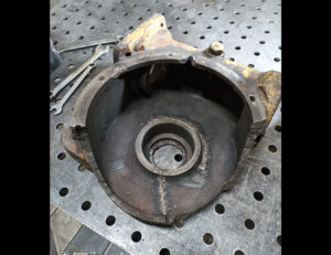 - Восстановление чугунных посадочных мест под подшипники, а также канавки под стопорное кольцо . До ремонта, во время ремонта, результат.